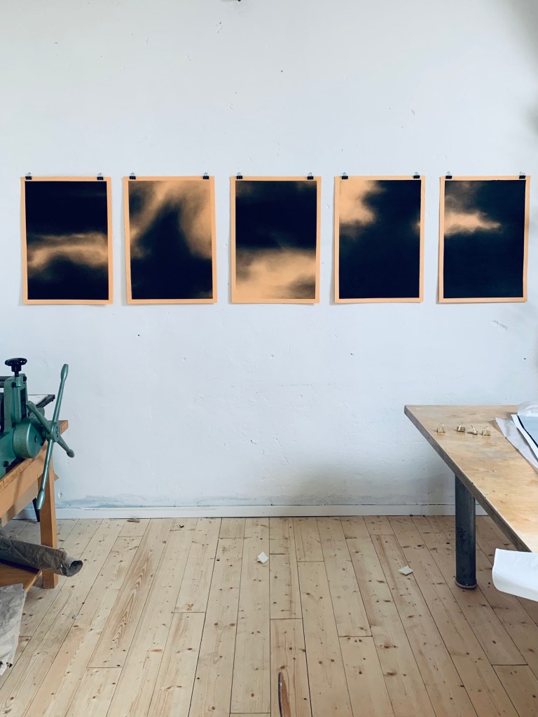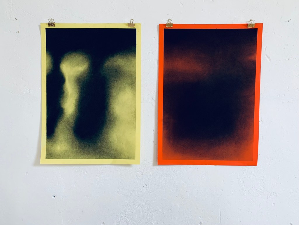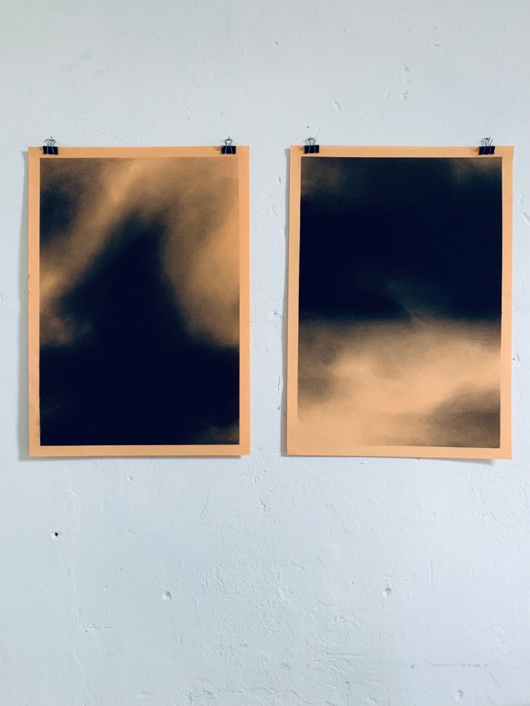Charcoal drawings on tinted paper