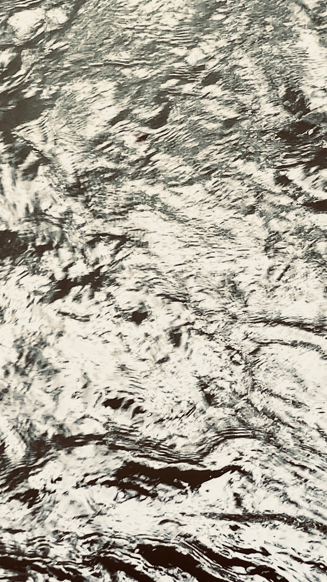 A video projection of flowing water overlays key parts of the arrangement and sound elements with white, brown and pink noise simulate an auditory grotto-like environment.
