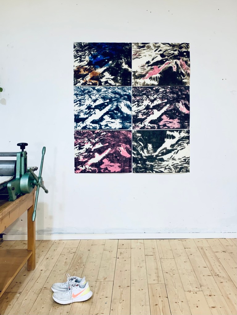 Series of carborundum collagraph prints on cotton rag paper,